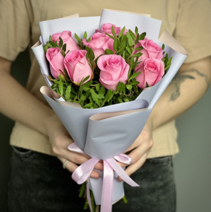 Купить букет из 9 розовых кенийских роз в Мурино
